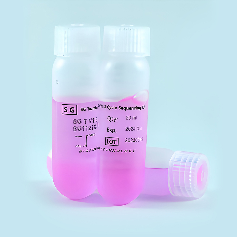 SG Terminator V2.0/V2.0N CycLe Sequencing Kit 是 针对本公司 SG Terminator V1.8 CycLe Sequencing Kit 版本的升级,在很多性能方面做了优化。此试剂盒专门用于Sanger测序,试剂盒主要包含了测序酶(SG T V2.0/V2.0N)、5X seqBuffer(SG 5X Seq Buffer)、发卡试剂(SG HP)其中的一种或者多种。针对目前一代测序的实际情况做了专门的优化,与您现在使用的测序试剂相比,在信号的强度、衰减趋势、复杂结构的通过率以及使用成本等方面,有较为明显的优势。